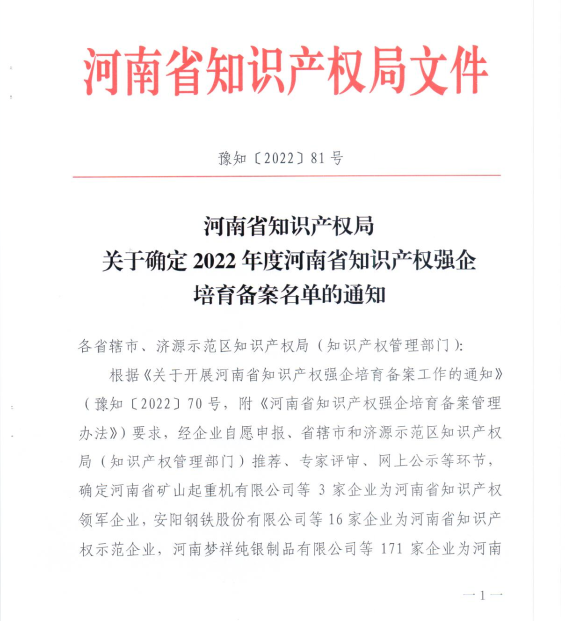 榮譽/鑫安利成功入選2022年度河南省知識產(chǎn)權(quán)優(yōu)勢企業(yè)